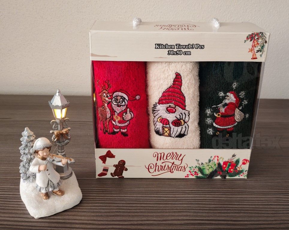 • Kvalitná 3-dielna darčeková sada vianočných bavlnených froté utierok.