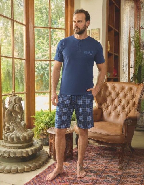 - Kvalitné a pohodlné pánske krátke bavlnené pyžamo YDGN0260002 vo farbe denim modrá.
