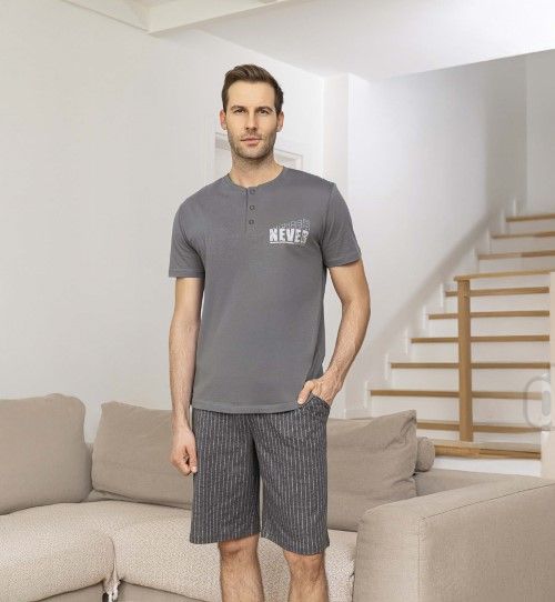 - Kvalitné a pohodlné pánske krátke bavlnené pyžamo YDGN0260008 v tmavošedej farbe.