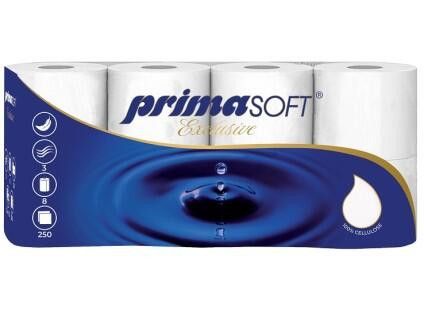 Toaletní papír PrimaSoft Exclusive, 3-vrstvý, 8 rolí, návin 30 m.